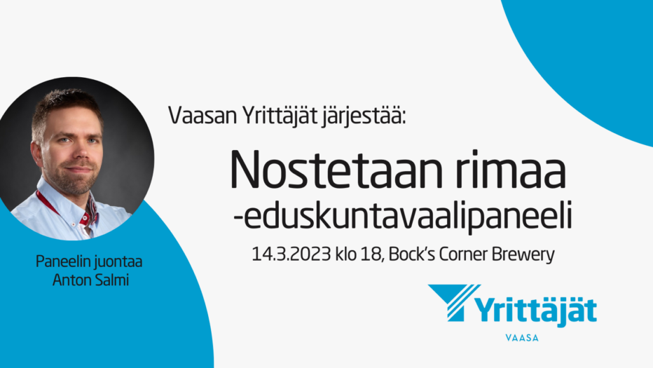 Yrittäjä, tule Vaasan Yrittäjien eduskuntavaalipaneeliin Bock’s Corneriin tiistaina 14.3. klo 18!