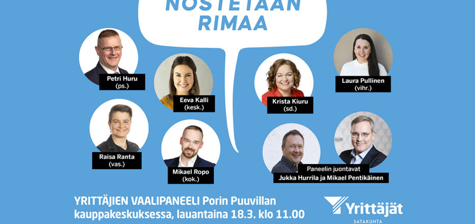 Yrittäjien eduskuntavaalipaneeli Porissa la 18.3. klo 11 – seuraa suoraa lähetystä tästä artikkelista tai tule paikan päälle katsomaan – Satakunnan yrittäjät – Satakunnan Kansa