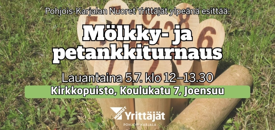 Pohjois-Karjalan Nuoret Yrittäjät kutsuvat sinuun perinteiseen, Ilovaarin aikaan järjestettävään leikkimieliseen mölkky- ja petankkiturnaukseen Joensuun Kirkkopuiston vehreille kukkuloille.