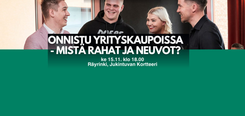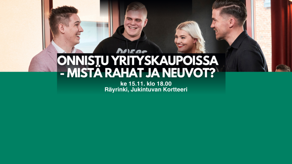 Tervetuloa kaikki yrittäjät ja yrityksen ostoa suunnittelevat paikkakunnasta riippumatta.