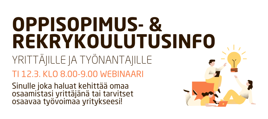 💡 Hyödynnä oppisopimus ja rekrykoulutus yrityksesi kasvun tukena – tule kuulemaan lisää!