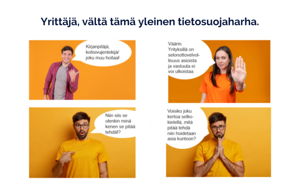 Turun Yrittäjät tarjoaa jäsenilleen tietosuojakoulutuksen, jonka avulla yrittäjät ottavat oman yrityksensä tietosuojan haltuun. Koulutuksessa saat vastauksia kysymyksiin, kuten: