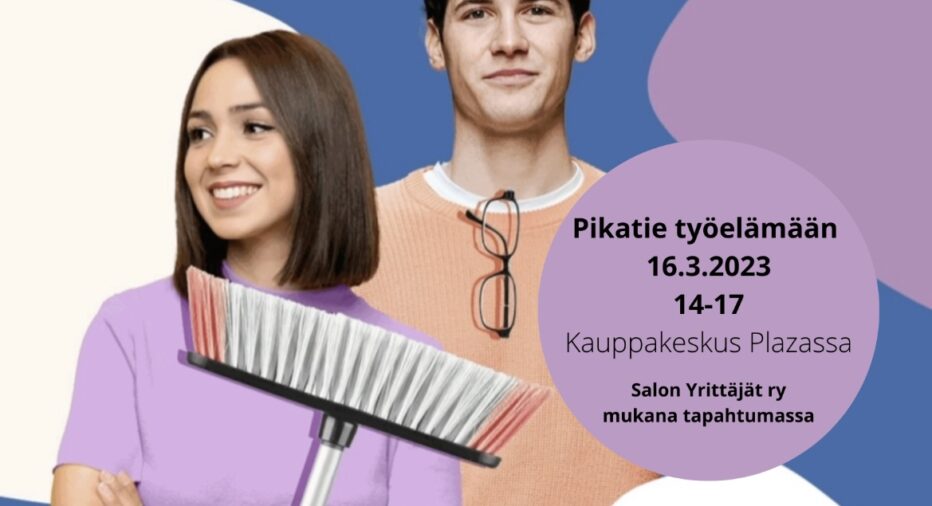 Plazan Pikatie työelämään on kaikille avoin tapahtuma, joka järjestetään kauppakeskuksessa torstaina 16.3.2023 klo 14-17. Pikatie työelämään toteutetaan yhteistyössä Salon TE-toimiston kanssa. Salon kaupungin työllisyyspalvelut tuo tapahtumaan Voimala-palvelupisteen, nuorten Ohjaamon ja työllisyyshanke Väylän sekä maahanmuuttajien neuvontapisteen HelppoSalon. Tapahtumassa on mukana myös Salon yrittäjät ry. Tapahtuman juontaa TE-toimiston tapahtumatuottaja Eija Erlamo.
