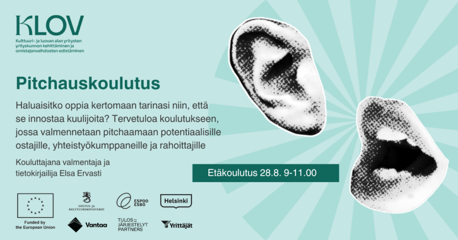 Koulutus on osa KLOV-hankkeen pilottiohjelmaa, jossa edistetään kulttuuri- ja luovan alan yritysten kuntoa ja omistajanvaihdoksia.