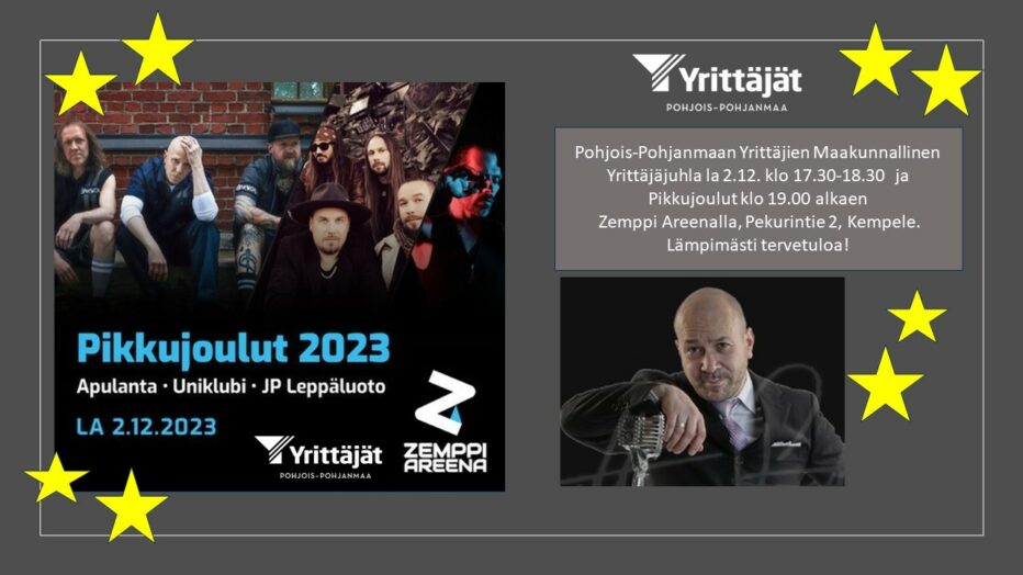 Pohjois-Pohjanmaan Yrittäjien perinteinen Maakunnallinen Yrittäjäjuhla ja Pikkujoulut lauantaina 2.12. Zemppi Areenalla.