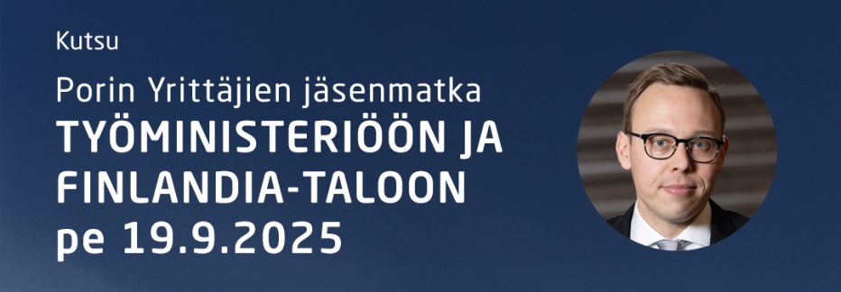 Tervetuloa mukaan Porin Yrittäjien jäsenmatkalle Työ- ja elinkeinoministeriöön ja Finlandia-taloon Helsinkiin perjantaina 19.9.2025.