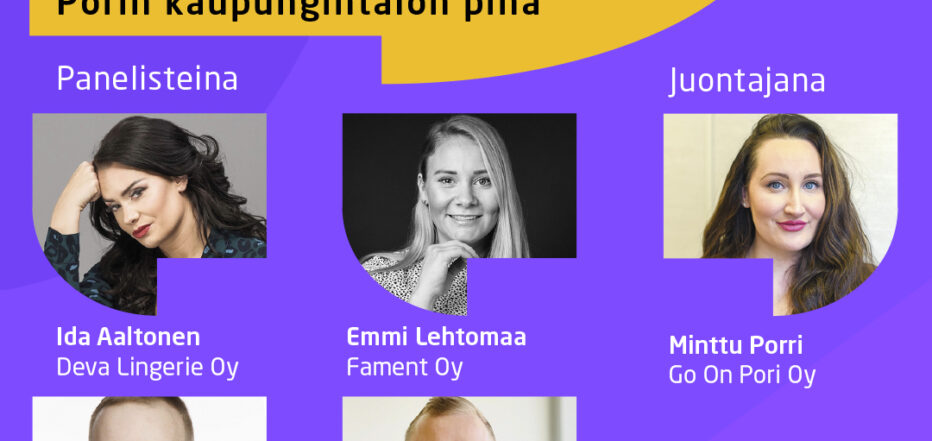 Porin Yrittäjien keskustelupaneeli Suomi-Areenassa perjantaina 28.6. klo. 12.00- 12.45 Kaupungintalon pihalla, aiheena Nuoret rohkeasti yrittäjäksi – kokemuksia ja kasvutarinoita.