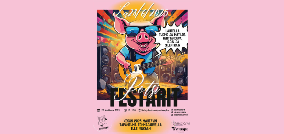 Potsifestareille tervetulleita ovat kaikki paikkakunnasta riippumatta. Tapahtuman järjestää Tohmajärven Yrittäjät ry. Lisätiedot: tohmajarven@yrittajat.fi. Tutustu muihin Potsipäivien tapahtumiin täältä.