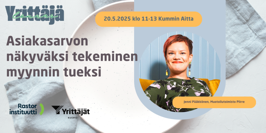 Rastori-instituutin 20.5. klo 11-13 Kummin Aitassa isännöimällä lounaalla aiheen asiantuntija on Piirre C Oy:n Jenni Pääkkönen.