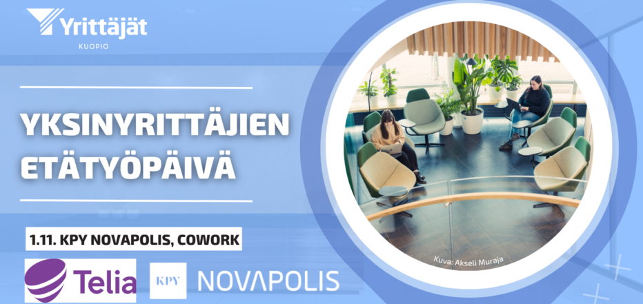 Tervetuloa viettämään etätyöpäivää yhdessä muiden yksinyrittäjien kanssa! Ilmoittaudu mukaan 27.10. mennessä.