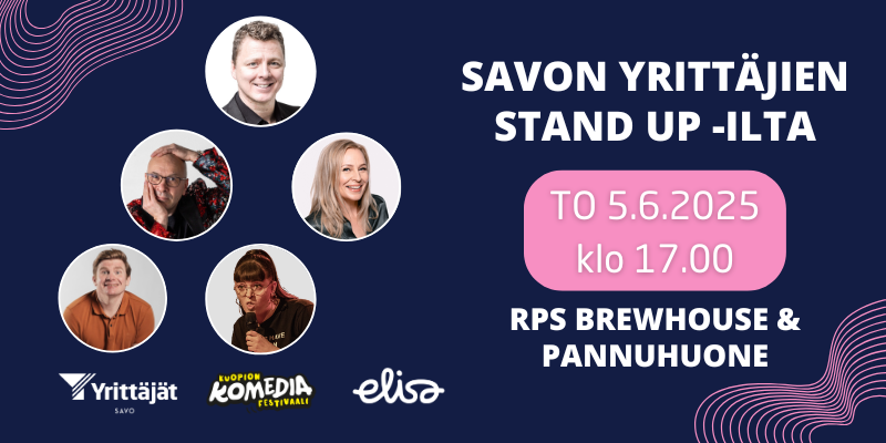 Supersuosittu Savon Yrittäjien Stand-Up -ilta tulee jälleen kesäkuussa! Tapahtuma on ollut viime vuosina loppuunmyyty, joten varmista paikkasi ajoissa!