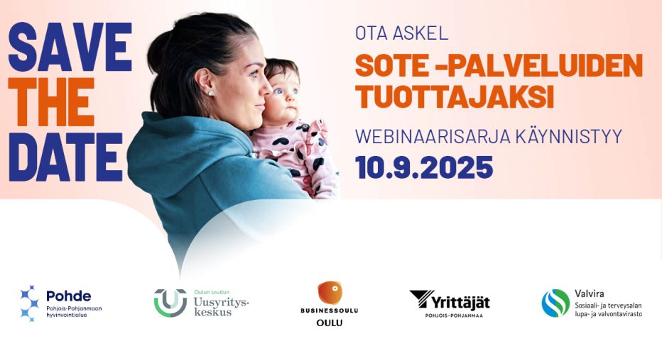 Webinaareissa joukko alan asiantuntijoita Valvirasta, Pohteelta sekä Uusyrityskeskuksesta opastavat, ohjeistavat ja neuvovat sote-alan yrittäjiä. Tarjolla on tietoa muun muassa yrityksen perustamisesta, Soteri-rekisteröinnistä ja Pohteen hankintamenettelyihin osallistumisesta.