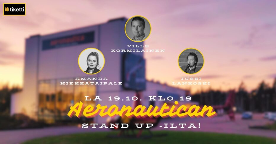 Aeronautica Arenan ravintolassa tarjolla lennokasta menoa stand upin muodossa lauantaina 19.10., kun lavalle nousevat koomikot Amanda Hiekkataipale, Ville Kormilainen sekä iltaa isännöivä Jussi Lankoski.