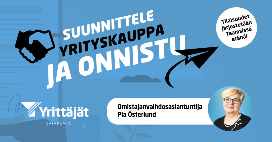 - Tule kuulemaan lisää Suunnittele yrityskauppa- ja onnistu- aamuinfoon Teamsissä tunnin tietoiskuna seuraavasta aiheesta: