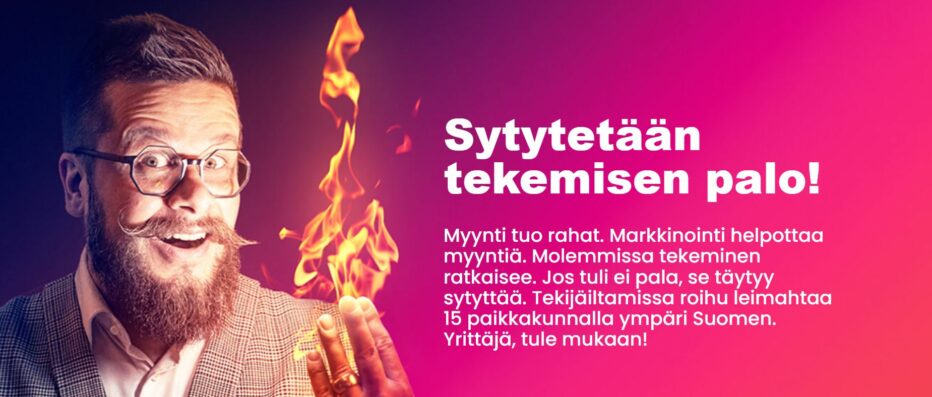 Muutamia vuosia sitten Markkinointi- ja Myynti-iltamat kiersivät Suomea innostamassa yrittäjiä markkinoimaan ja myymään. Osallistujilla syttyi hehku, mutta pian arki sen kovin monella sammutti. Niin usein käy.