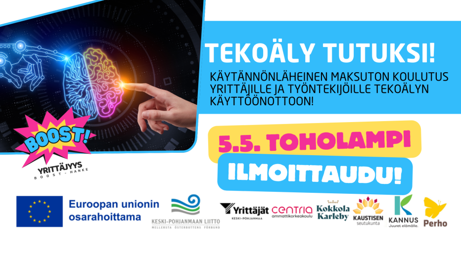 Tekoäly on täällä – oletko valmis hyödyntämään sen mahdollisuuksia? Tule maksuttomaan koulutukseen oppimaan tekoälyn perusteet ja sen käytännön sovellukset yrittäjän ja työntekijän näkökulmasta!