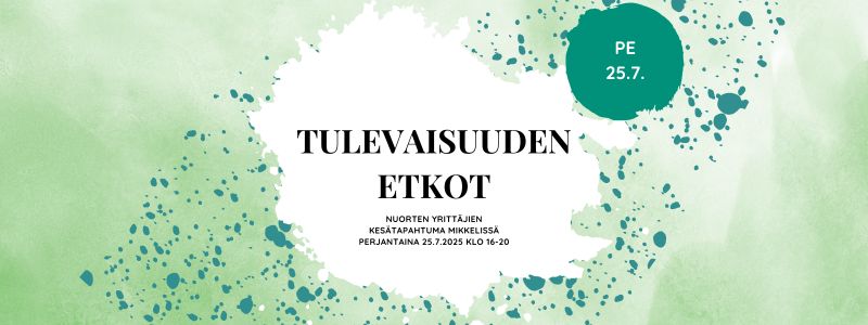 Tervetuloa Tulevaisuuden etkot -tapahtumaan, joka kokoaa yhteen Etelä-Savon nuoret yrittäjät! Perjantaina 25.7.2025 järjestämme kesätapahtuman, jossa pääset verkostoitumaan, inspiroitumaan ja jakamaan ajatuksia yrittäjyydestä sekä palautumisesta. Tapahtuman päätteeksi suuntaamme yhdessä St. Michel Summerfesteille nauttimaan musiikista ja kesän tunnelmasta!