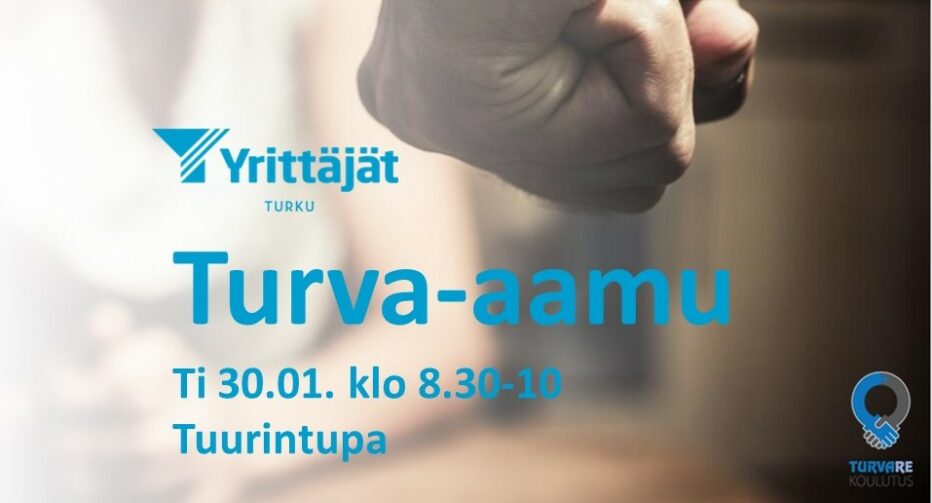 Ilmoittautuminen turva-aamuun Turun Yrittäjien verkkosivujen tapahtumakalenterin kautta. Kevyt aamiaistarjoilu!