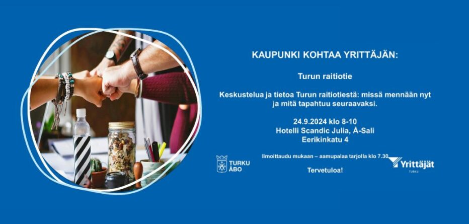 Turun raitiotien toteutussuunnittelu on parhaillaan käynnissä. Suunnitteluvaiheessa ennakoidaan mahdollisen rakentamisen aloittamista. Tervetuloa kuulemaan, miten raitiotien suunnittelu etenee ja keskustelemaan mieltä askarruttavista asioista! Tilaisuuden järjestävät Turun kaupunki, Turun Raitiotie oy ja Turun Yrittäjät ry