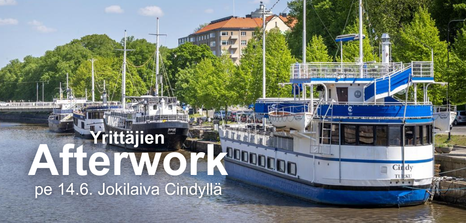 Kesäisenä afterwork-paikkana toimii tällä kertaa Jokilaiva Cindy! Aurinkoisella säällä istuskelemme ulkona, mutta mikäli sää vaatii, niin siirrymme sisätiloihin.