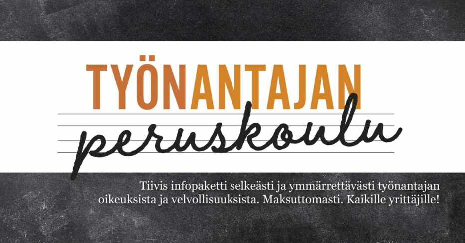 Lämpimästi tervetuloa Meklaripajan sekä Lakiasiaintoimisto Legimian järjestämään Työnantajan peruskouluun. Tässä tiiviissä kolmen webinaarin sarjassa kerrotaan selkeästi ja ymmärrettävästi työnantajan oikeuksista ja velvollisuuksista. Hyppää siis mukaan perättäisinä keskiviikkoina (5.10., 12.10. ja 19.10.) klo 8-8.30.