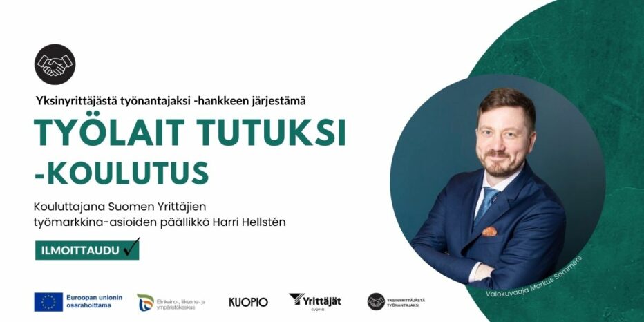 Lämpimästi tervetuloa tiistaina 17.9. klo 16.30 Yksinyrittäjästä työnantajaksi -hankkeen järjestämään Työlait tutuksi -koulutukseen.