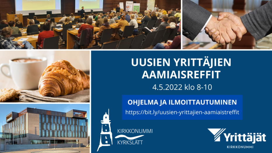 Kirkkonummen Yrittäjät ry järjestää yhteistyössä Kirkkonummen kunnan kanssa seminaarin vuonna 2020-2022 Kirkkonummella toimintansa aloittaneille yrittäjille.