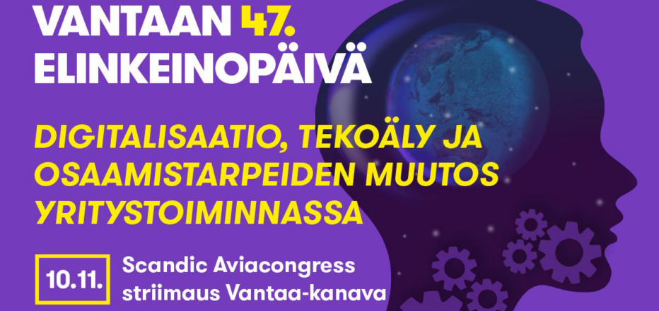 Elinkeinopäivä järjestetään tänä vuonna 10.11.2023 teemalla ”Digitalisaatio, tekoäly ja osaamistarpeiden muutos yritystoiminnassa”. Tapahtumassa lavalla nousevat mm. Työn ja talouden tutkimuslaitos Laboren johtaja Mika Maliranta, tutkimusjohtaja Jari Kaivo-oja Tulevaisuuden tutkimuskeskuksesta, tekoäly-yritys Silo AI:n hallituksen puheenjohtaja ja perustajaosakas Tero Ojanperä sekä Vantaan tuore kaupunginjohtaja Pekka Timonen. Tervetuloa mukaan!