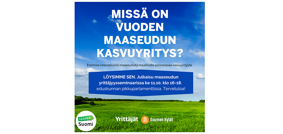 Suomen Yrittäjät ry ja Suomen Kylät ry haluavat tuoda arvostusta maaseudulta maailmalle ponnistaville yrityksille. Suomen Yrittäjät tukevat kotimaista yrittäjyyttä koko Suomessa ja Suomen Kylät ry pitää maaseudun asukkaiden ja kehittäjien puolia ja toimii eduntekijänä 53 Leader-ryhmälle, jotka rahoittavat maaseudun yrityksiä.