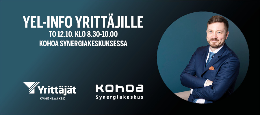 Tule Kohoa Synergiakeskukseen to 12.10. aamulla kuulemaan ajantasaiset faktat YELiin liittyen. Asiantuntijana ja luennoitsijana Suomen Yrittäjien työmarkkina-asioiden päällikkö Harri Hellstén.