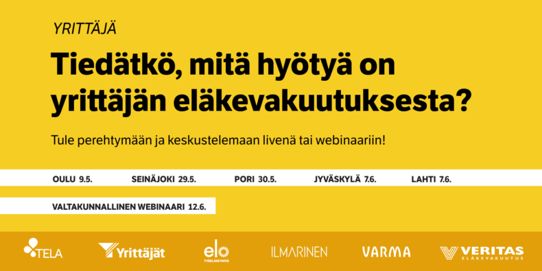 Työeläkevakuuttaja Tela ry järjestää yhdessä Suomen Yrittäjien ja työeläkeyhtiöiden kanssa YEL-kiertueen, joka saapuu Lahteen 7.6.2023. Tilaisuudessa käymme läpi yrittäjän eläkelaki YEL:n uudistusta sekä lain hyötyjä yrittäjille. Alueellisena yhteistyökumppanina toimii Päijät-Hämeen Yrittäjät.