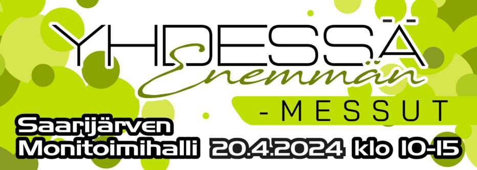 Markkinat, näyttelyt ja messut Yhdessä Enemmän -messut 20.4.2024 klo 10:00 – 15:00 Saarijärvi Keski-Suomen Yrittäjät Saarijärven Yrittäjät 20.4.2024 klo 10-15 Saarijärven Monitoimihallilla { "name":"Yhdessä Enemmän -messut", "description":"", "startDate":"2024-04-20", "startTime":"10:00", "endDate":"2024-04-20", "endTime":"15:00", "location":"", "label":"Lisää kalenteriin", "options":[ "Apple", "Google", "iCal", "Microsoft365", "MicrosoftTeams", "Outlook.com", "Yahoo" ], "inline":true, "listStyle":"modal", "trigger":"click", "timeZone":"Europe/Helsinki", "iCalFileName":"Yrittajat.fi - Yhdessä Enemmän -messut" } Maksullinen Saarijärvi Jaa Kopioitu leikepöydälle