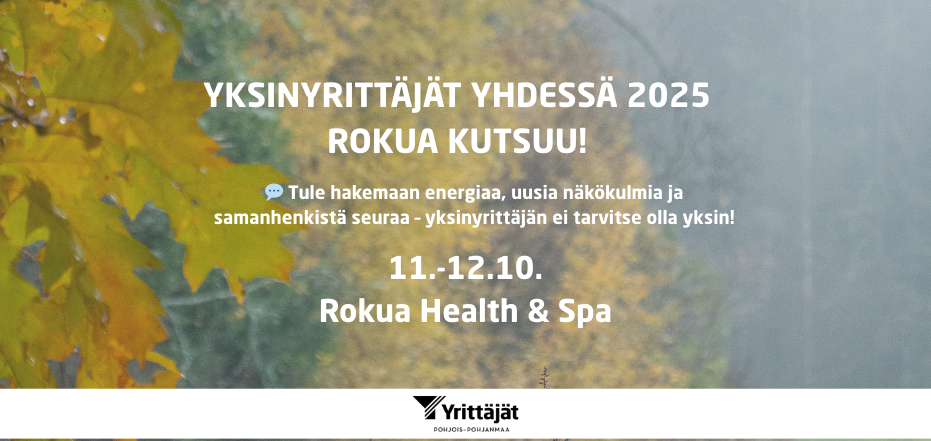 Lähde mukaan yksinyrittäjien vuoden lämminhenkisimpään viikonloppuun 11.–12.10.2025 Rokualle!