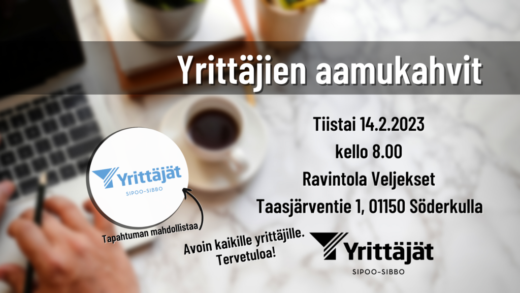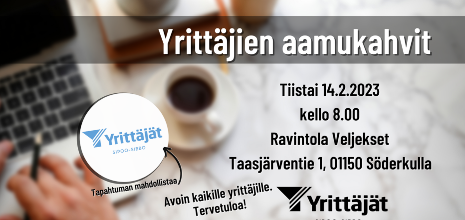 Sipoon Yrittäjien – Sibbo Företagare järjestää vuoden ensimmäiset yrittäjäaamiaiset tiistaina 14.2.2023 klo 8.00 alkaen Ravintola Veljeksissä, Söderkullassa. Tervetuloa verkostoitumaan ja nauttimaan maukasta, maksutonta aamiaista yhdessä muiden yrittäjien kanssa.