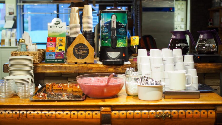 Mikäli haluat juttuseuraa yrittäjäkollegoistasi lounaan aikana, suuntaa itsesi kohti Yrittäjä-tunnuksella merkittyä pöytää!