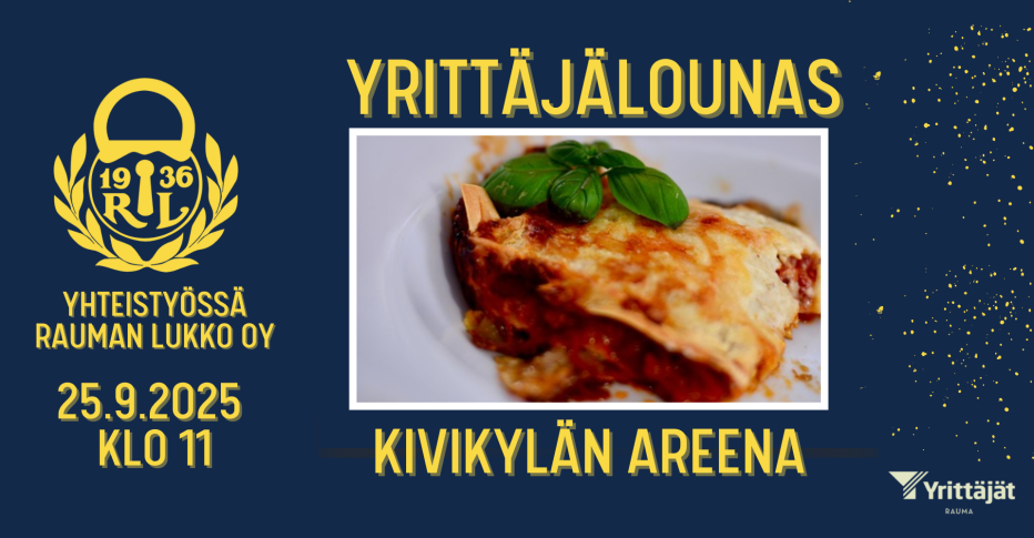 Kuten ennenkin, lounas on osallistujille maksuton. Lounaan tarjoaa Rauman Lukko Oy ja Kivikylän Areenan herkullisen lounaan aikana kuulet Lukon kuulumisiaan ja keskustelet toisten yrittäjien kanssa.