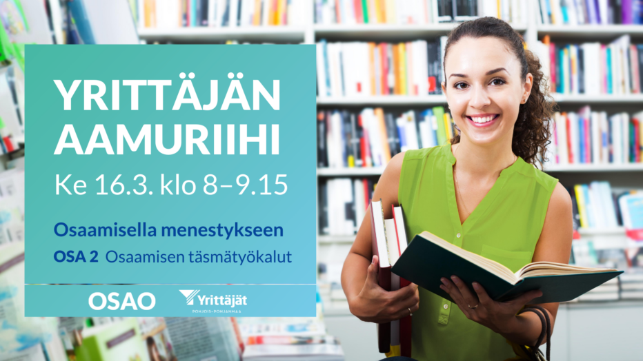Teemana keskiviikon 16.3.2022 klo 8.00-9.15 Yrittäjän aamuriihessä on OSAAMISELLA MENESTYKSEEN OSA 2. OSAAMISEN TÄSMÄTYÖKALUT.