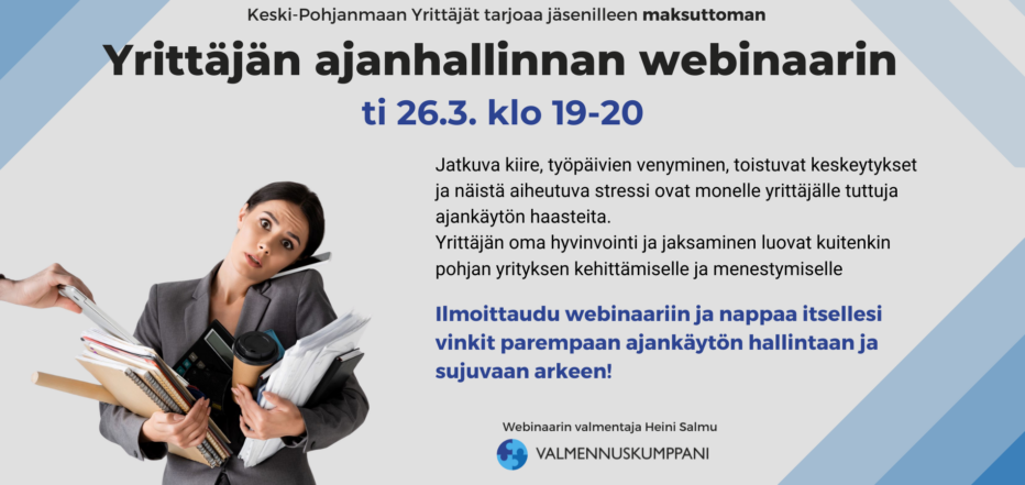 Yrittäjän ajanhallinnan webinaarin tiistaina 26.3. klo 19-20