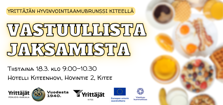 Yrittäjän hyvinvointiaamubrunssi Kiteellä: Vastuullista jaksamista