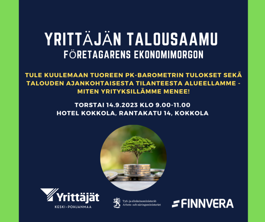 Tule kuulemaan tuoreen pk-barometrin tulokset sekä talouden ajankohtaisesta tilanteesta alueellamme – Miten yrityksillämme menee! Tilaisuus toteutetaan hybridinä, joten voit joko osallistua paikan päälle Hotel Kokkolaan, jossa osallistujille tarjolla aamupala tai seurata tilaisuutta alla olevan Teams linkin kautta.
