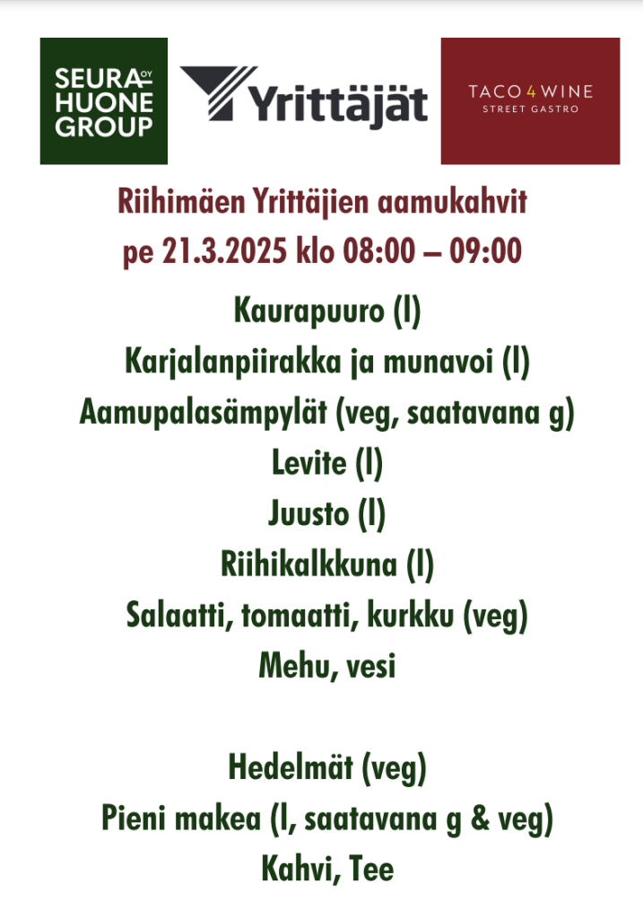 Yrittäjien Aamukahvit tarjoaa 21.3. Taco 4 Wine