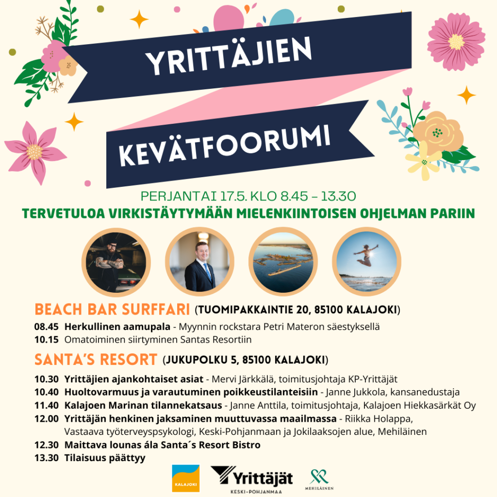 Tervetuloa perjantaina 17.5. klo 8.45 alkaen Keski-Pohjanmaan Yrittäjien Kevätfoorumiin Kalajoen Hiekkasärkille!