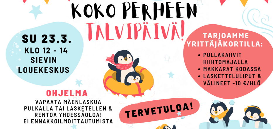 Lämpimästi tervetuloa viettämään mukavaa talvipäivää yhdessä koko perheen voimin!