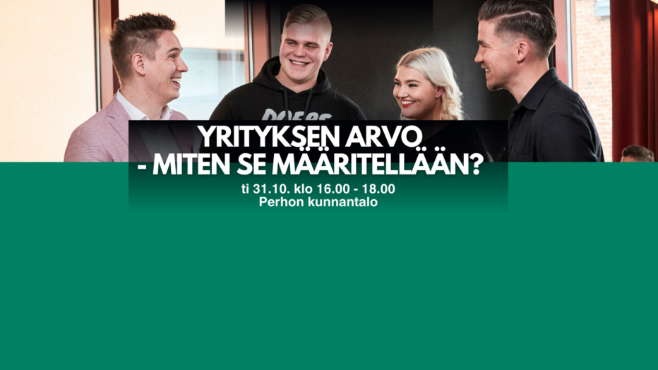 Yrittäjä tai yrityksen ostoa suunnitteleva tule kuulemaan oivalluksia ja käytännön neuvoja yrityksen arvon määrittämiseen. Tilaisuus on maksuton, sisältää kahvitarjoilun!