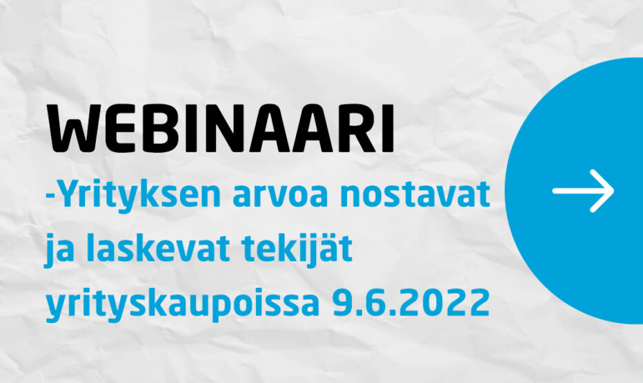 Yrityksen arvoa nostavat ja laskevat tekijät yrityskaupoissa. Mikä merkitys on hyvällä taloushallinnolla ja verotuksella? Webinaari omistajanvaihdosta suunnitteleville yrittäjille ja omistajille.