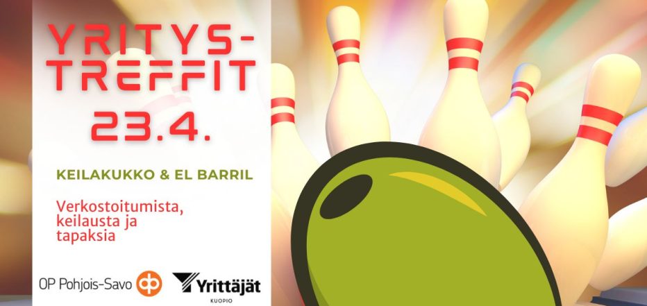 Tervetuloa verkostoitumaan yritystreffeille ke 23.4. klo 17 alkaen. Treffit aloitamme keilaamalla KeilaKukossa (Kauppakeskus Vihtori, Puijonkatu 19) ja iltaa jatkamme ElBarril -tapasbaarissa (Kauppakeskus Aapeli, Kauppakatu 28).