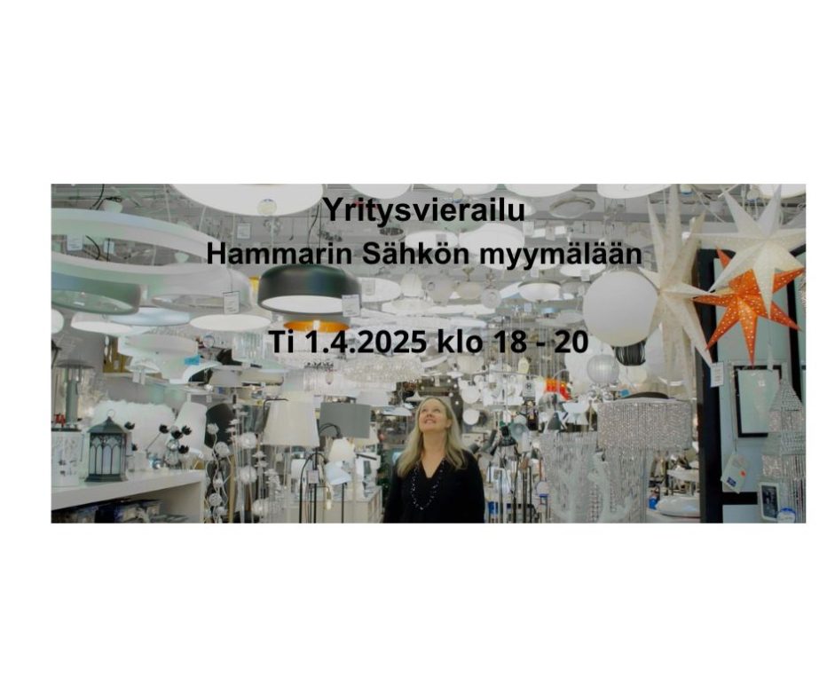 Pohjois-Pohjanmaan Yrittäjien yksinyrittäjäverkosto vierailee Hammarin Sähkön myymälässä 1.4.2025 klo 18.00 – 20.00. Kuulemme inspiroivan tarinan Suomen vanhimman sähköliikkeen yli 110 vuotisesta historiasta ja tämän päivän liiketoiminnasta.