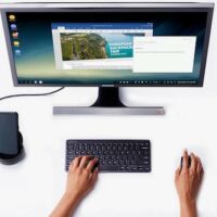 Samsungin DeX-telakan avulla Galaxy S8 -puhelimen voi yhdistää ulkoiseen näyttöön, näppäimistöön ja hiireen. Yhdistelmä helpottaa älypuhelimen käyttöä liikkuvassa työssä.