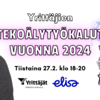 Yrittäjä - älä jää jälkeen tekoälyn rynnistyksestä markkinoille. Tervetuloa maksuttomaan iltatapahtumaan kuulemaan, mitä sinun tulee tietää tekoälytyökaluista sekä kuinka voit hyödyntää…