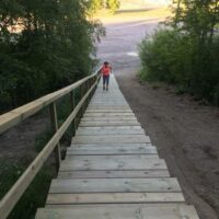 Neuvotteluja kaupungin ja maanomistajien kanssa, rakentajan etsiskelyä ja viimein päästiin rakentamaan. Lammin Yrittäjät sai kuntoportaat valmiiksi LASBin edustusjoukkueen avulla.